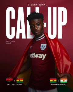 English Premier League side, West Ham United have reacted to the November 7 Black Stars call up for their star player, Mohammed Kudus.