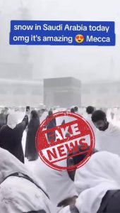 You can read the full Reuters report: Video of snow falling near the Kaaba in Saudi Arabia’s Grand Mosque of Mecca is digitally altered