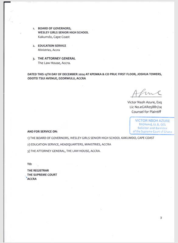 The court processes were filed on December 23, 2024 on the face of the records, then the story blew up the following day about how a young lawyer had taken on a popular A-Class Senior High School (SHS) in a case of stated religious discrimination.