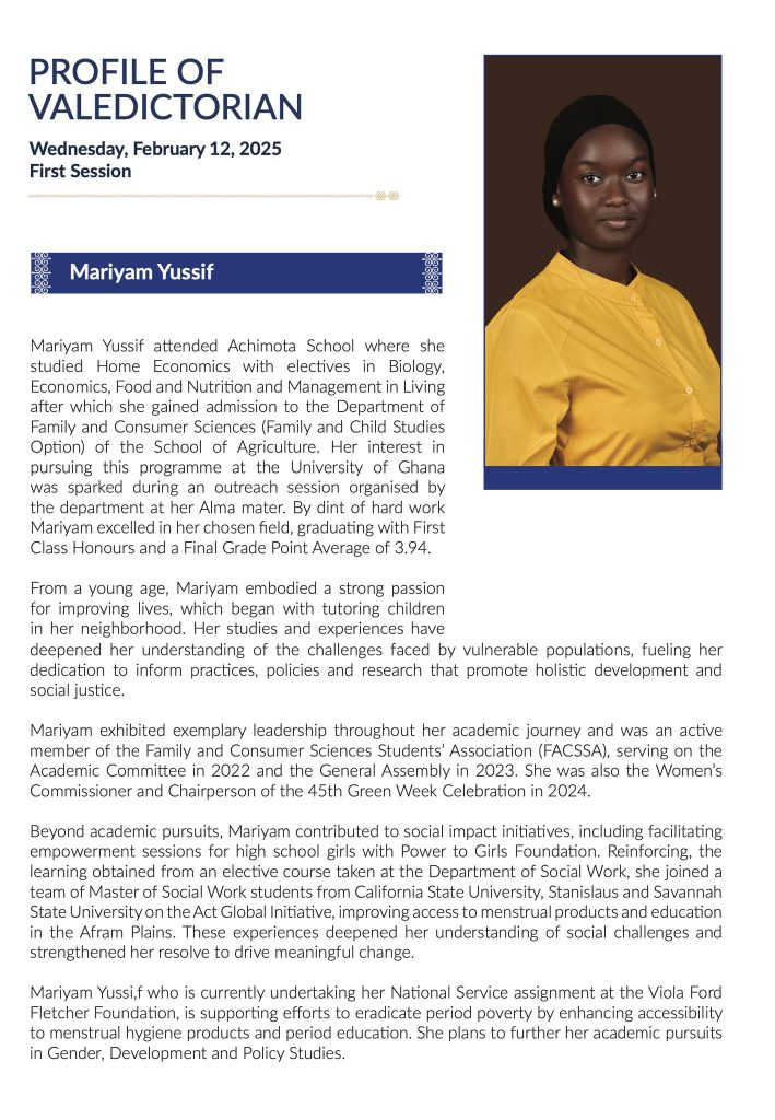“From her days at Achimota School, where she studied Home Economics with Biology and Economics, to excelling at the University of Ghana’s Department of Family and Consumer Sciences, Mariyam Yussif has remained committed to improving lives.