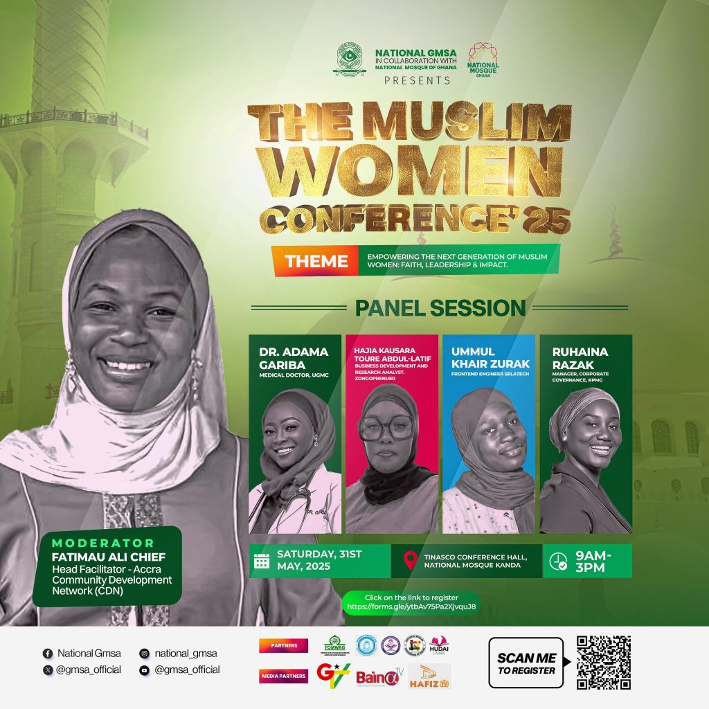 It is slated for Saturday, 31st May 2025 at the National Mosque Conference Hall, Kanda – Accra. It is a ladies only event, open to students & young professionals. The event is organized by National Ghana Muslim Students Association (GMSA) in collaboration with the National Mosque, Ghana.