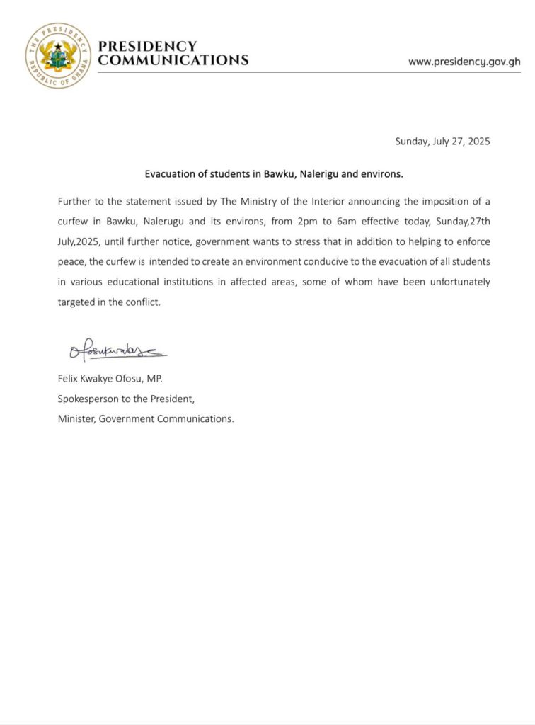 The presidency, on July 27, 2025, had reason to issue two separate statements on the raging chieftaincy conflict in Bawku.